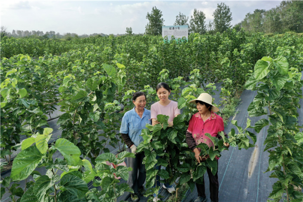 安徽省蠶桑研究所研究員李瑞雪在六安市三十鋪鎮(zhèn)太平村蠶桑生產(chǎn)示范基地指導秋季桑園病蟲害防治。
