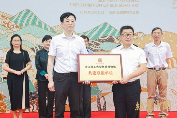 9月13日,“絲畫中國絲巾藝術(shù)展首展”于百年絲綢學(xué)府——浙江理工大學(xué)絲綢博物館開展。本次展覽由《絲綢》雜志社與浙江理工大學(xué)絲綢博物館共同主辦,杭州奧羅拉實業(yè)有限公司等單位協(xié)辦,展覽得到了中國絲綢博物館等單位的大力支持。