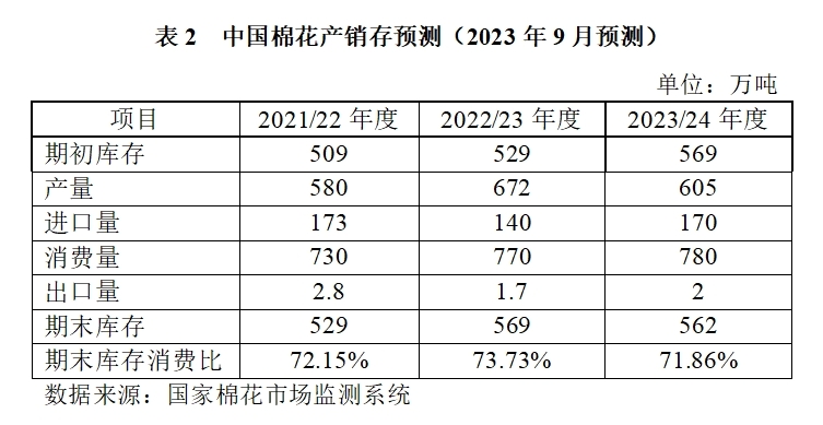 (三)2023年度中國(guó)棉花產(chǎn)銷(xiāo)存預(yù)測(cè)