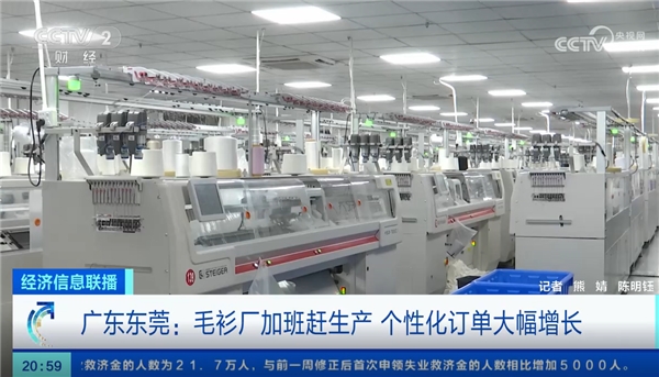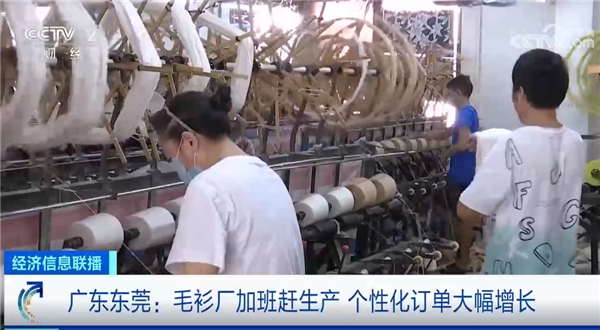 記者在一家毛衫廠看到,幾百臺(tái)機(jī)器正不停編織毛衣,盡管工廠目前已經(jīng)馬力全開,依然無(wú)法滿足所有客戶的訂單需求。為了滿足生產(chǎn)需求,該企業(yè)今年還引進(jìn)了190多臺(tái)一體成型編織機(jī)器。工廠負(fù)責(zé)人表示,今年的銷售量相比以往增加了2-3倍,工廠正加班加點(diǎn)完成訂單。