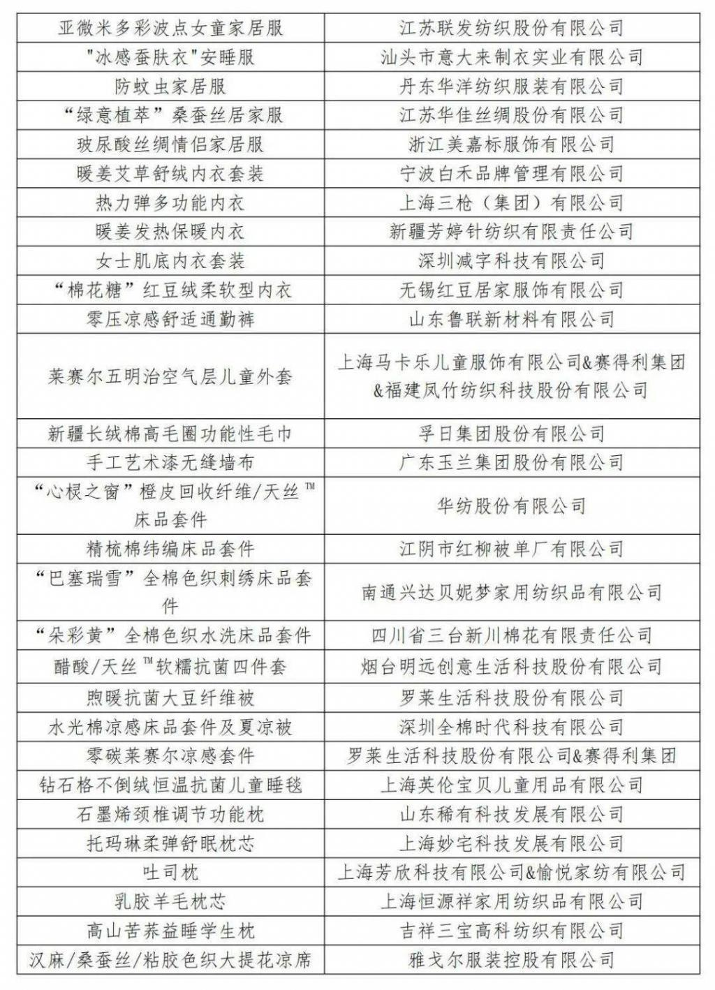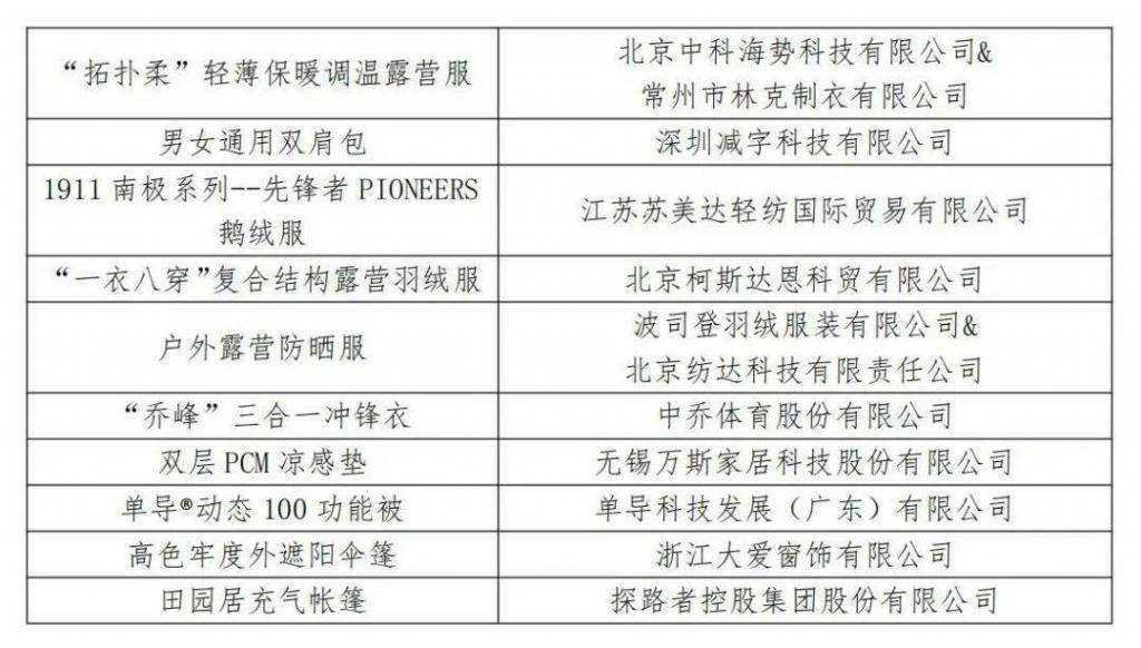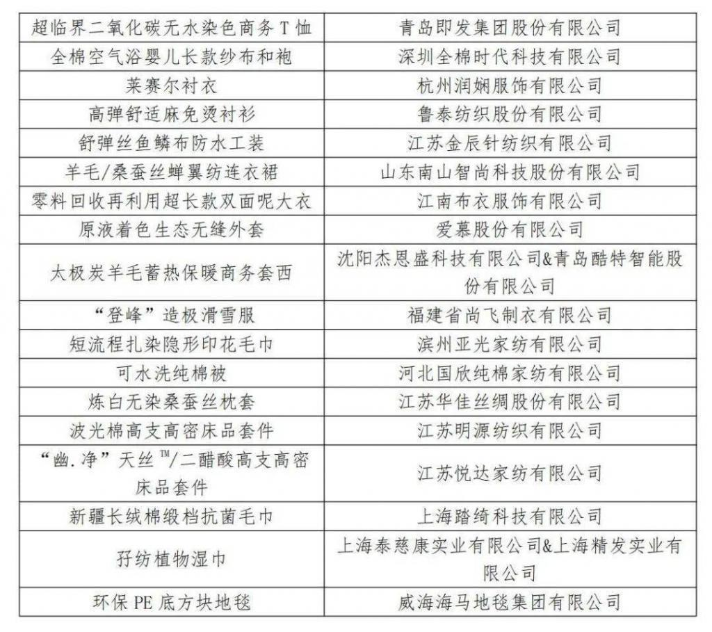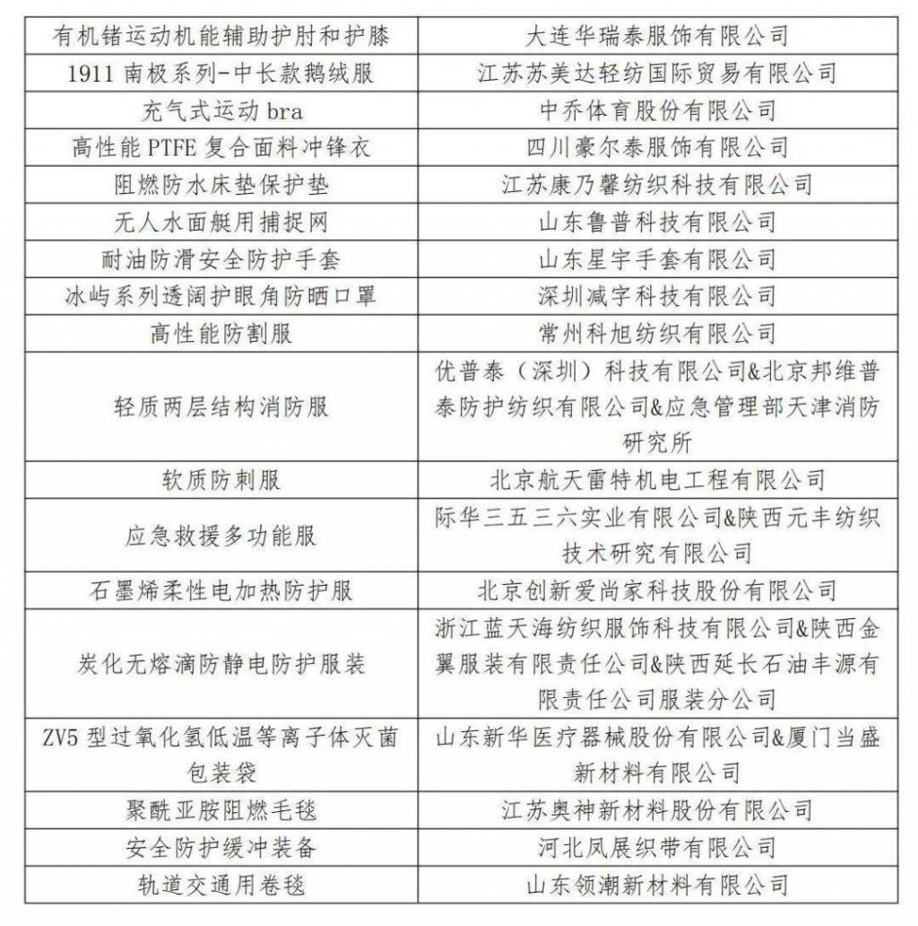 1.2023年度十大類紡織創(chuàng)新產品十大精品獲選產品及單位名單