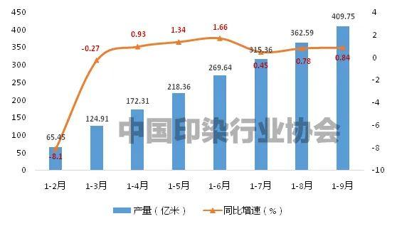 2023年前3季度印染行業(yè)規(guī)模以上企業(yè)印染布產(chǎn)量及增速變化情況