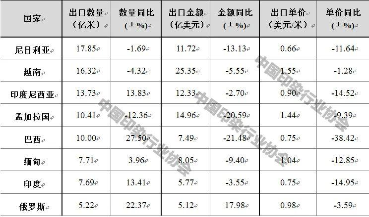 2023年前3季度我國(guó)印染八大類產(chǎn)品出口部分國(guó)家情況
