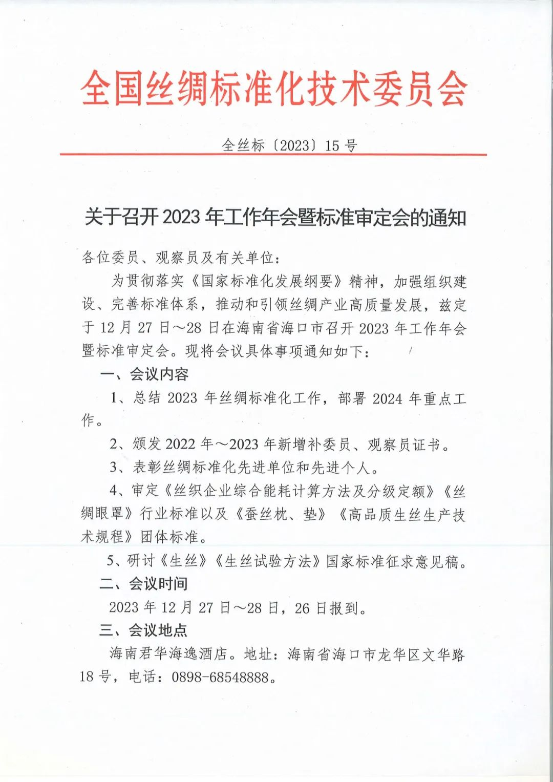 行業(yè)新聞丨全國絲綢標(biāo)準(zhǔn)化技術(shù)委員會2023年工作年會暨標(biāo)準(zhǔn)審定會通知