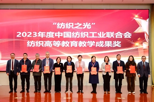 會上進(jìn)行了“紡織之光”2023年度中國紡織工業(yè)聯(lián)合會教師獎和學(xué)生獎、教學(xué)成果獎頒獎。中國紡織工業(yè)聯(lián)合會黨委副書記陳偉康宣讀《關(guān)于表彰“紡織之光”2023年度中國紡織工業(yè)聯(lián)合會教師獎和學(xué)生獎的決定》《關(guān)于授予“紡織之光”2023年度中國紡織工業(yè)聯(lián)合會紡織高等教育教學(xué)成果獎的決定》。