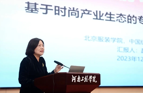 北京服裝學(xué)院教務(wù)處處長趙洪珊解讀了《“時(shí)尚聚能 動態(tài)迭代”基于時(shí)尚產(chǎn)業(yè)生態(tài)的專業(yè)建設(shè)探索與實(shí)踐》報(bào)告。她提到,依托價(jià)值塑造引領(lǐng),黨旗紅引領(lǐng)時(shí)尚紅;優(yōu)化專業(yè)布局,時(shí)尚聚能動態(tài)迭代;產(chǎn)業(yè)鏈浸潤式,產(chǎn)教融合科教協(xié)同三方面內(nèi)容,項(xiàng)目實(shí)現(xiàn)了“專業(yè)建設(shè)達(dá)到新高度、教師人才隊(duì)伍邁向高水平、學(xué)生培養(yǎng)成效顯著、社會評價(jià)獲得高度認(rèn)可、重要媒體廣泛報(bào)道、國際學(xué)術(shù)影響力提升、各類院校廣泛推廣”的應(yīng)用效果。