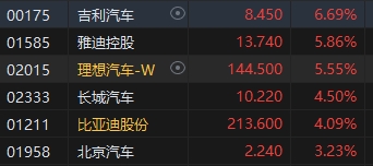 汽車(chē)股漲幅明顯,吉利汽車(chē)漲超6%領(lǐng)銜。消息面上,極氪007于昨日正式上市,新車(chē)已在廣州車(chē)展上開(kāi)啟預(yù)售,新車(chē)將于2024年1月1日開(kāi)始交付,預(yù)售價(jià)格為22.99萬(wàn)元人民幣起。該公司CEO安聰慧透露,極氪007預(yù)售40天錄得訂單量51569輛。另外,吉利高管回應(yīng)未被小米汽車(chē)致敬:“加油,雖未被致敬,但仍然敞開(kāi)胸扉歡迎新玩家入場(chǎng)。”