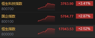 12月28日消息,港股三大指數(shù)高開(kāi)高走,截至收盤(pán),恒生指數(shù)(17043.529, 418.69, 2.52%)漲2.52%,報(bào)17043.53點(diǎn),恒生科技指數(shù)(3763.9, 124.14, 3.41%)漲3.41%,國(guó)企指數(shù)漲2.87%。盤(pán)面上,核心科技股齊漲,美團(tuán)、京東漲超5%,快手漲近4%,網(wǎng)易、百度漲超3%,小米集團(tuán)微跌;內(nèi)房股漲幅居前,龍光集團(tuán)(0.62, 0.05, 8.77%)、旭輝控股集團(tuán)(0.255, 0.02, 8.05%)漲超8%;汽車(chē)股漲幅明顯,吉利汽車(chē)(8.45, 0.53, 6.69%)漲超6%領(lǐng)銜;內(nèi)險(xiǎn)股集體上漲,中國(guó)平安(35.25, 1.90, 5.70%)漲近6%;旅游股全天強(qiáng)勢(shì),中國(guó)中免(76.35, 7.60, 11.05%)漲超12%。