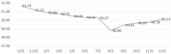 從管理者景氣指數(shù)來看,總指數(shù)中,12月管理者景氣指數(shù)為50.16,比11月的52.17下降2.01個(gè)百分點(diǎn);經(jīng)營(yíng)環(huán)境指數(shù)為49.03,比11月的52.33下降3.30個(gè)百分點(diǎn)。