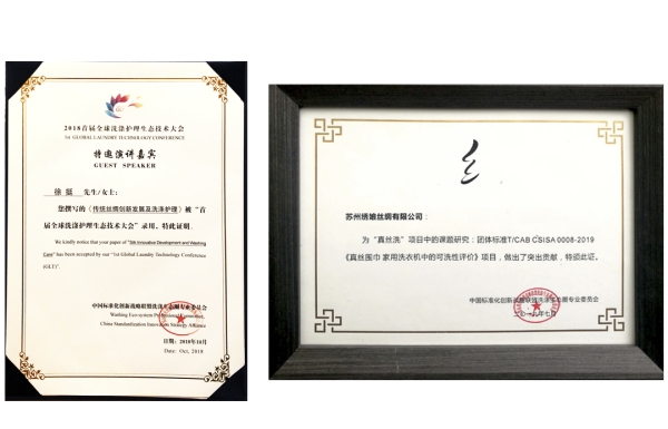 繡娘絲綢立足于讓絲綢更年輕、更科技、更國際的需求,基于絲綢消費的難洗、易皺等痛點,先后研發(fā)了可機(jī)洗絲綢、抗皺絲綢等產(chǎn)品,引領(lǐng)國內(nèi)“真絲洗”課題研發(fā)推進(jìn),為行業(yè)的進(jìn)步和發(fā)展做出積極的貢獻(xiàn)。