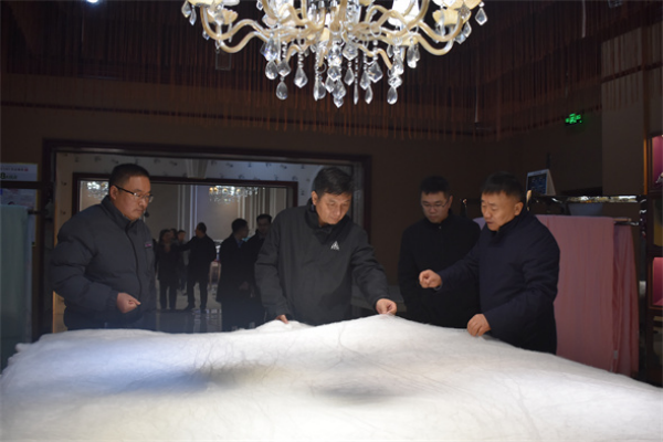 1月6日上午,阜陽市委副書記、市長胡明文深入安徽京九絲綢集團調(diào)研第五次全國經(jīng)濟普查工作開展情況,并實地指導(dǎo)京九絲綢生產(chǎn)經(jīng)營事宜。市政府秘書長孫存坤,潁州區(qū)區(qū)委常委、常務(wù)副區(qū)長笪前進(jìn)等陪同調(diào)研。中國絲綢協(xié)會副會長、公司董事長馬品德,總經(jīng)理周炎熱情接待領(lǐng)導(dǎo)一行并匯報工作。