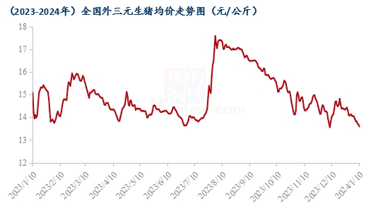 據(jù)Mysteel數(shù)據(jù)監(jiān)測,截至24年1月10日,全國外三元生豬出欄均價為13.59元/公斤,較昨日下跌0.09元/公斤。全國豬價延續(xù)跌勢,豬病影響下的中部地區(qū)供給縮量情況兌現(xiàn)力度有限,南方產(chǎn)能過剩、標(biāo)豬貨源持續(xù)沖擊中北部市場,規(guī)模場對年后預(yù)期愈發(fā)悲觀、出欄計(jì)劃前置情況增加,供給端壓力仍空前巨大;而終端需求無有效跟進(jìn),在南方腌臘逐漸完結(jié)后,白條市場蕭條情況愈發(fā)凸顯,屠企單量下降,加之市場短期看漲氛圍不強(qiáng),養(yǎng)戶亦無惜售情緒,預(yù)計(jì)明日行情或延續(xù)弱勢運(yùn)行。重點(diǎn)關(guān)注規(guī)模場出欄節(jié)奏及市場豬源流向情況。