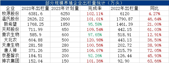 據(jù)市場公開消息整理,2023年部分規(guī)模養(yǎng)殖場出欄年度目標(biāo)基本完成,僅少數(shù)豬企接近完成(完成率超9成)。盡管全年養(yǎng)殖行業(yè)虧損持續(xù),企業(yè)資金壓力不減,不過同比2022年出欄量數(shù)據(jù)來看,規(guī)模企業(yè)產(chǎn)能增幅明顯,部分增幅已超50%。上表10家豬企2023年生豬總銷量超過1.3億頭,接近全國生豬總出欄量的20%。生豬行業(yè)規(guī)模化進(jìn)程不斷加快,尤其是龍頭企業(yè)近年來產(chǎn)能快速擴(kuò)張,行業(yè)產(chǎn)能集中化程度提升。當(dāng)前生豬行情偏弱整理,不過規(guī)模豬企產(chǎn)能調(diào)減幅度有限,甚至部分上市豬企產(chǎn)能不降反升,主要是行業(yè)內(nèi)卷、企業(yè)競爭程度加劇造成的。隨著近年來散養(yǎng)戶的不斷淘汰,規(guī)模場面臨著巨幅的虧損及高額的資金壓力,仍普遍采取逆勢穩(wěn)產(chǎn)增產(chǎn)的策略。