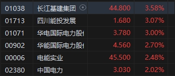電力股漲幅居前,長江基建集團漲超3%。天風證券指出,2024年火電盈利能力仍將進一步改善,上半年業(yè)績改善程度或將較下半年更為顯著,且下半年需待利用小時、煤炭供需等進一步明朗。伴隨著火電盈利能力的改善,各公司分紅水平或將有所提高,從而帶動火電在股息方面的吸引力提升。