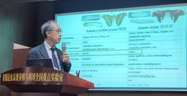 在室交流訪問期間,Shimada教授在蠶學(xué)宮學(xué)術(shù)報(bào)告廳作了題為“Molecular genetics of Samia ricini and Samia cynthia (Lepidoptera: Saturniidae)”的學(xué)術(shù)報(bào)告,并分別到實(shí)驗(yàn)室桑樹研究單元、干細(xì)胞研究單元、病原微生物研究單元和家蠶遺傳資源研究單元,與各方向師生開展了內(nèi)容豐富的交流討論。各研究單元師生和Shimada教授均高度重視此次交流活動(dòng),分別圍繞蠶、桑、絲、病原微生物等的基礎(chǔ)和應(yīng)用研究有關(guān)問題,交流探討了最新研究方向、有關(guān)主要內(nèi)容及成果。