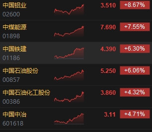 中字頭股午后集體走強,中國鋁業(yè)漲超8%,中煤能源漲超7%,中國鐵建(4.39, 0.00, 0.00%)、中石油漲超6%。消息面上,1月24日,在國務(wù)院新聞辦公室舉行的發(fā)布會上,國務(wù)院國資委有關(guān)負責人表示,將進一步研究把市值管理納入中央企業(yè)負責人業(yè)績考核,引導(dǎo)中央企業(yè)負責人更加重視所控股上市公司的市場表現(xiàn),及時通過應(yīng)用市場化增持、回購等手段傳遞信心、穩(wěn)定預(yù)期,加大現(xiàn)金分紅力度,更好地回報投資者。