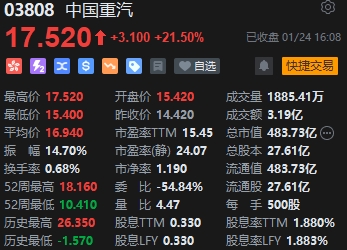重型機械股漲幅居前,中國重汽漲超21%。中國重汽發(fā)盈喜,預(yù)計2023年度溢利將較2022年的16.7億人民幣增長200%-240%。主要受惠國內(nèi)宏觀經(jīng)濟穩(wěn)中向好及海外市場需求提升,重卡行業(yè)需求復(fù)蘇明顯,集團產(chǎn)品銷量實現(xiàn)大幅增長,高端產(chǎn)品占比持續(xù)提升,盈利能力顯著提升。
