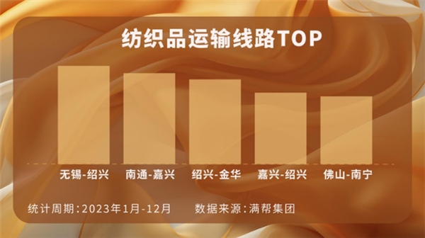 滿幫集體發(fā)布紡織品貨運(yùn)數(shù)據(jù)報(bào)告顯示,2024年伊始,江蘇紡織品發(fā)貨噸數(shù)同比攀升44.5%,2023年全年同比上漲22.29%,紡織品運(yùn)出總貨重同比上升5.2%。