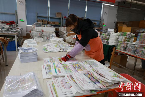 1月25日,一名工人在打包十字繡產(chǎn)品