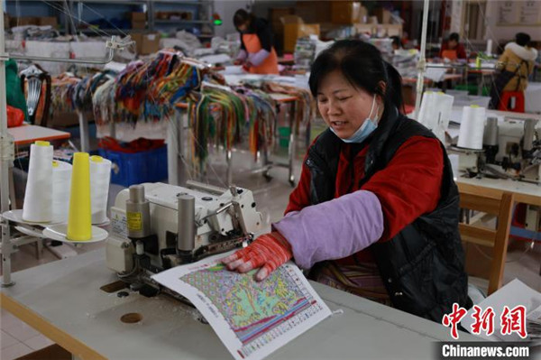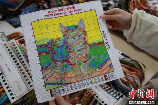 1月25日,一名工人在生產(chǎn)十字繡產(chǎn)品