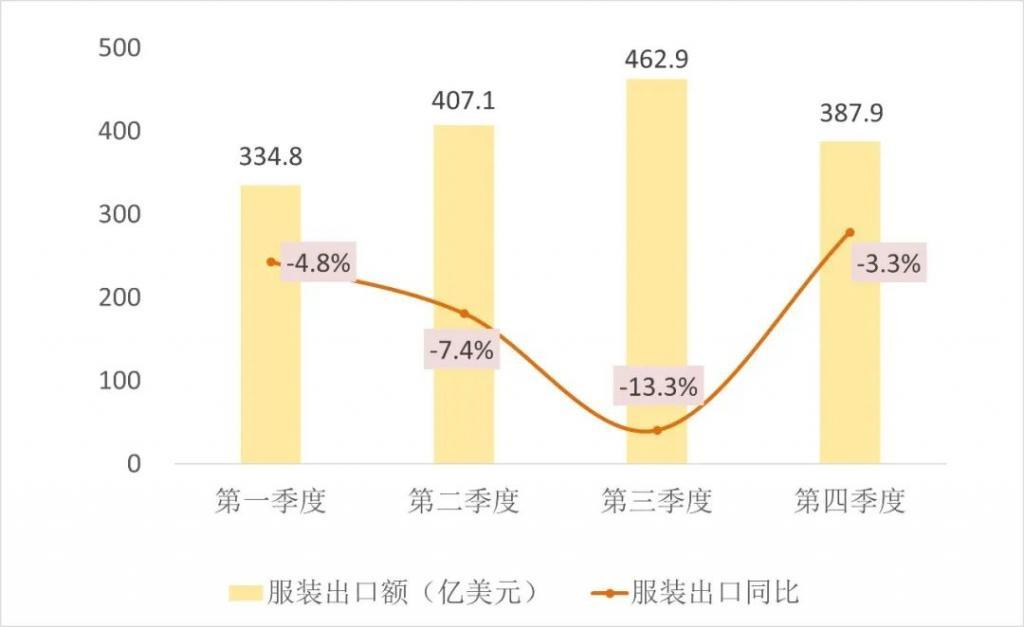 圖3 2023年全國服裝出口季度統(tǒng)計
