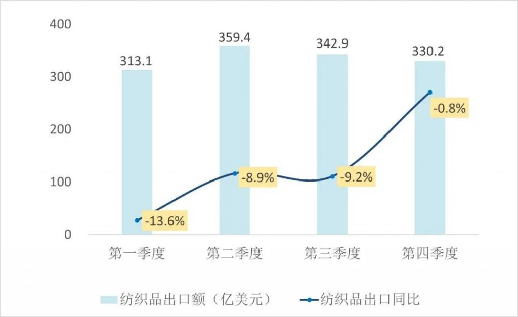 圖2 2023年全國紡織品出口季度統(tǒng)計
