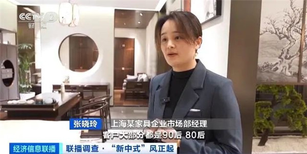 上海某家具企業(yè)市場部經(jīng)理 張曉玲:客戶主要以“90后”“80后”為主,2023年年底我們又研發(fā)兩個新的系列,這種“新中式”款式有超過100款。