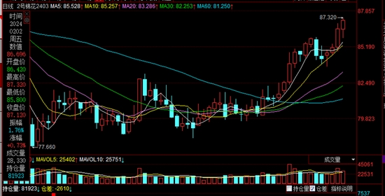近兩個(gè)交易日,ICE期棉繼續(xù)飆升,周五,ICE3月棉花(16045, 35.00, 0.22%)期貨合約最高漲至87.32美分/磅,創(chuàng)2023年10月初以來(lái)新高。