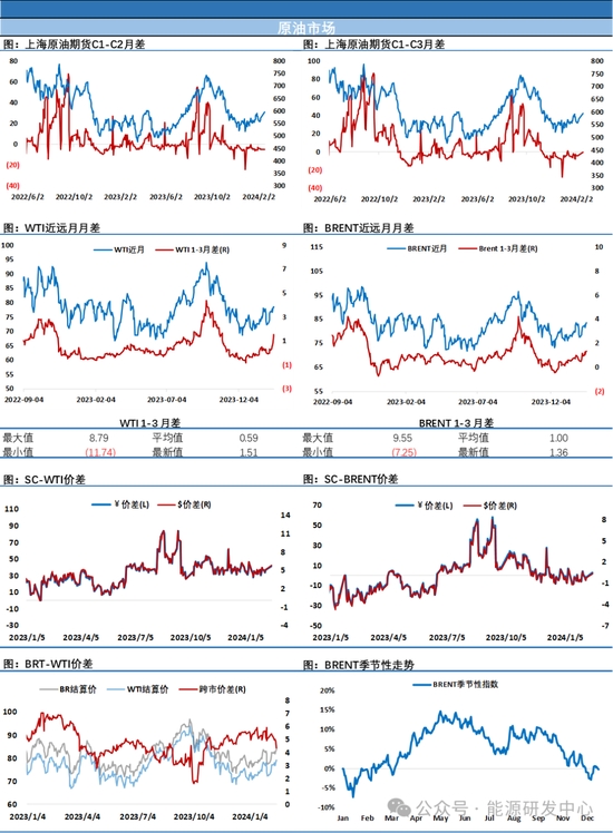 近期地緣風波持續(xù)擾動市場,尤其是以色列加大加沙地區(qū)的打擊導致?;痤}材的反轉,對市場情緒影響明顯,投資者對供應端擔憂有所升溫,原油市場月差走強。但原油走強同時,近期歐美成品油表現(xiàn)卻在庫存下降背景下,表現(xiàn)明顯弱于上游原油市場,需求無亮點成為了限制油價表現(xiàn)的原因。這意味著原油市場供需二端出現(xiàn)分歧,油價在此背景下很容易走出拉鋸行情。同時宏觀層面美聯(lián)儲利率政策預期在近期也反復搖擺,總體降息概率呈現(xiàn)降溫態(tài)勢,也影響了投資者對大類資產表現(xiàn)的判斷??傮w來看目前市場影響因素呈現(xiàn)多空交織局面,投資者對油價關鍵關口的選擇判斷存在分歧,沒有形成一致性觀點,注意節(jié)奏把握,謹慎參與。