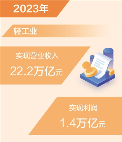 中國(guó)輕工業(yè)聯(lián)合會(huì)近日發(fā)布數(shù)據(jù)顯示,2023年我國(guó)輕工業(yè)實(shí)現(xiàn)營(yíng)業(yè)收入22.2萬億元,同比增長(zhǎng)1.6%,實(shí)現(xiàn)利潤(rùn)1.4萬億元,同比增長(zhǎng)3.8%。輕工業(yè)以占全國(guó)工業(yè)13.2%的資產(chǎn),實(shí)現(xiàn)了全國(guó)工業(yè)16.7%的營(yíng)業(yè)收入和18.1%的利潤(rùn),有力支撐工業(yè)經(jīng)濟(jì)穩(wěn)定發(fā)展。