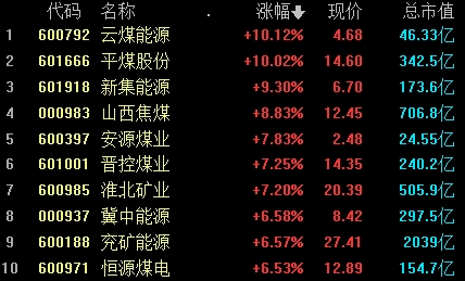 平煤股份、新集能源(6.700, 0.00, 0.00%)、云煤能源、山西焦煤(12.450, 0.00, 0.00%)等多股走強(qiáng)。