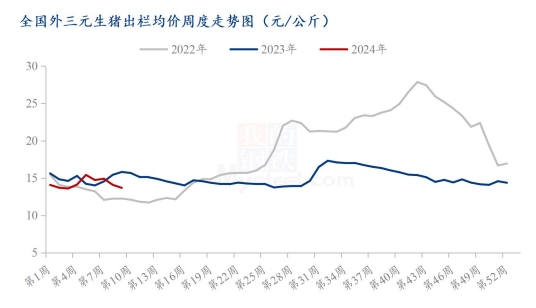 根據(jù)Mysteel農(nóng)產(chǎn)品數(shù)據(jù)顯示:截止到2月29日,全國外三元生豬出欄均價為13.69元/公斤,較上周下跌0.40元/公斤。臨近月底,本周豬價震蕩回調(diào),但前期跌幅明顯而近日漲幅不大,周度重心仍顯弱勢。