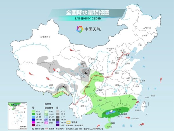 后天,新疆南疆盆地、西藏東部、青海東部、甘肅中南部、川西高原北部等地部分地區(qū)有小到中雪或雨夾雪,局地有大雪。西北地區(qū)東南部、西南地區(qū)東部、江南南部、華南等地部分地區(qū)有小到中雨,其中,廣西東部、廣東西部等地部分地區(qū)有大雨。