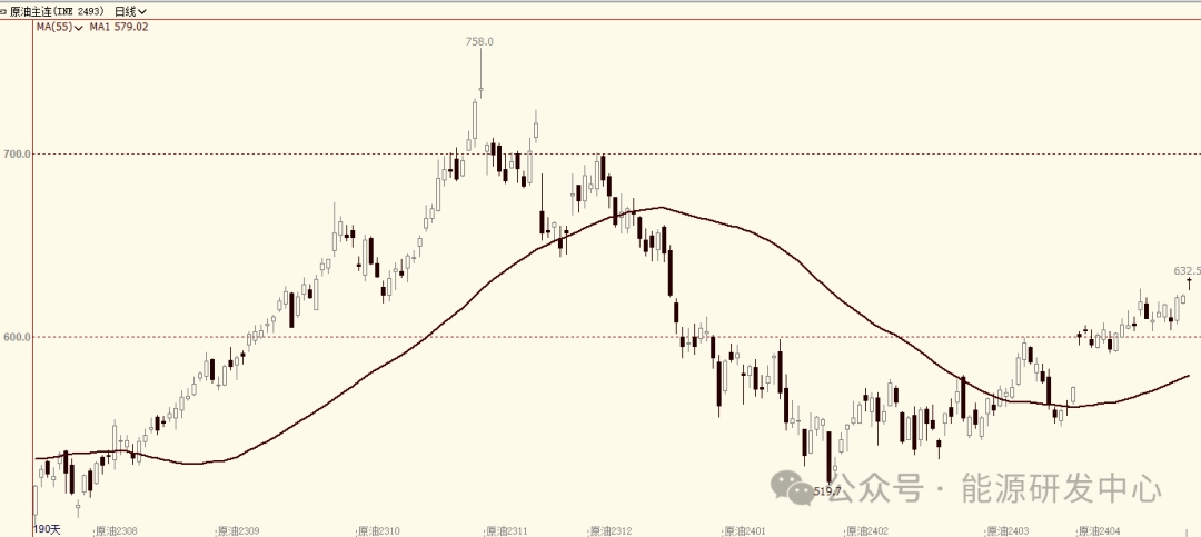 EIA發(fā)布報告顯示美國當(dāng)周原油(634, 12.90, 2.08%)庫存意味下降,且美國國內(nèi)原油產(chǎn)量繼續(xù)減少10.0萬桶至1310.0萬桶/日。盡管美國煉廠開工率繼續(xù)提升,但汽油庫存下降566萬桶,降幅錄得2023年11月3日當(dāng)周以來最大,顯示了美國汽油需求強勁。利好周度數(shù)據(jù)為油價繼續(xù)提供上行能量,油價最終大幅收高。地緣因素給油價注入了溢價,這種影響通常是短期擾動,但這次利多聚集在此為油價帶來了機會,成品油市場持續(xù)回暖,前期走弱的月差也隨著反彈回升,SC原油已經(jīng)率先跳出近期震蕩刷新高點,關(guān)注歐美油價能否借此機會突破盤局。重點關(guān)注歐美成品油市場是否能持續(xù)走強,繼續(xù)提升市場信心,注意節(jié)奏把握,謹(jǐn)參與。