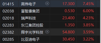 3月18日消息,今日港股三大指數(shù)低開(kāi)高走,截至收盤(pán),恒生指數(shù)(16737.119, 16.23, 0.10%)漲0.1%,報(bào)16737.12點(diǎn),恒生科技指數(shù)(3594.22, 44.38, 1.25%)漲1.25%,國(guó)企指數(shù)漲0.48%。盤(pán)面上,科網(wǎng)股普遍上漲,快手漲超4%,小米、京東、騰訊漲超2%;汽車(chē)股集體大漲,東風(fēng)集團(tuán)股份(3.73, 0.55, 17.30%)漲超17%;蘋(píng)果概念股漲幅居前,高偉電子(17.3, 1.20, 7.45%)漲超7%;基建股表現(xiàn)活躍,中國(guó)中鐵(3.97, 0.14, 3.65%)漲超3%;互聯(lián)網(wǎng)醫(yī)療股齊漲,平安好醫(yī)生(12.56, 0.80, 6.80%)漲近7%;中資券商股全天強(qiáng)勢(shì),中金公司(10.32, 0.47, 4.77%)漲近5%;內(nèi)房股普遍走低,龍湖集團(tuán)(10.06, -0.48, -4.55%)跌超4%;黃金、煤炭、香港地產(chǎn)股跌幅靠前。