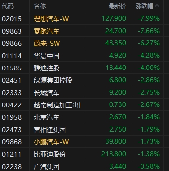 3月19日消息,今日港股三大指數(shù)低開高走,截至收盤,恒生指數(shù)跌1.24%,報(bào)16529.48點(diǎn),恒生科技指數(shù)跌1.83%,國企指數(shù)跌1.16%。盤面上,科網(wǎng)股普遍下跌,嗶哩嗶哩、網(wǎng)易跌超2%,快手、騰訊、聯(lián)想、美團(tuán)、阿里巴巴跌超1%;汽車股重挫,理想跌近8%領(lǐng)跌,零跑汽車跌超7%,蔚來跌超6%;藥明系下挫,藥明康德跌超7%,藥明生物跌5%;內(nèi)房股集體下跌,旭輝控股跌近8%,越秀地產(chǎn)跌超6%;石油股逆勢走強(qiáng),中海油、中石油漲超1%;煤炭股集體上漲,蒙古焦煤漲超7%,南戈壁漲超6%。
