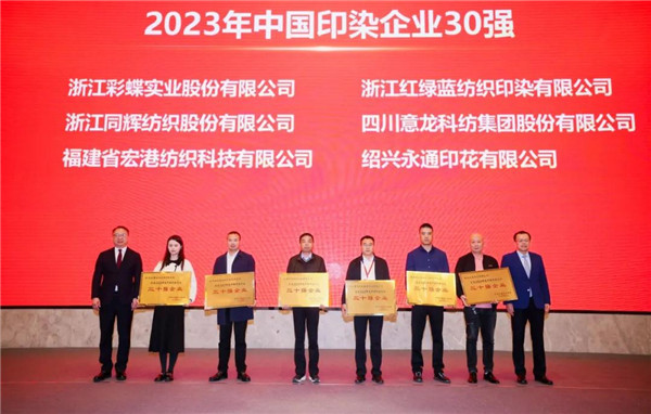 會(huì)議還頒發(fā)了2023年中國印染企業(yè)30強(qiáng)、符合《印染行業(yè)規(guī)范條件(2017版)》企業(yè)以及中國印染行業(yè)協(xié)會(huì)基地牌匾。
