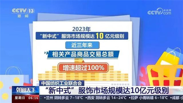 中國(guó)紡織工業(yè)聯(lián)合會(huì)數(shù)據(jù)顯示,2023年“新中式”服飾市場(chǎng)規(guī)模達(dá)10億元級(jí)別,近三年來(lái),相關(guān)產(chǎn)品商品交易總額增速超過(guò)100%。今年1月以來(lái),在互聯(lián)網(wǎng)銷售平臺(tái)上“新中式”“宋錦”的搜索量環(huán)比分別增長(zhǎng)近6倍和近20倍。