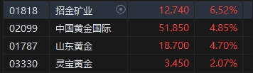 黃金股齊漲,招金礦業(yè)漲超6%。4月8日,現(xiàn)貨黃金短線上漲16美元,報2343.5美元/盎司續(xù)創(chuàng)新高。此外,截至2024年3月末,我國黃金儲備7274萬盎司,這也是央行自2022年11月以來連續(xù)第17個月增持黃金儲備。
