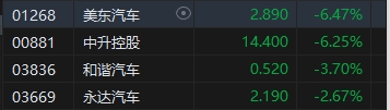 汽車經(jīng)銷板塊今日表現(xiàn)欠佳,美東汽車跌超6%。消息面上,8家港股汽車經(jīng)銷商的2023年財報已先后出爐。其中,有5家公司2023年凈利潤同比下滑。中升控股(14.4, -0.96, -6.25%)凈利潤為50.18億元,同比下滑24.97%;永達(dá)汽車(2.19, -0.06, -2.67%)凈利潤為5.86億元,同比下滑60.16%;美東汽車凈利潤為1.56億元,同比下滑71.98%;百得利控股(0.46, 0.00, 0.00%)凈利潤為0.84億元,同比下滑65.25%。正通汽車(0.255, 0.01, 2.00%)2023年虧損8.2億元,同比擴(kuò)大約176.1%;毛利為10.09億元,同比下降36%。