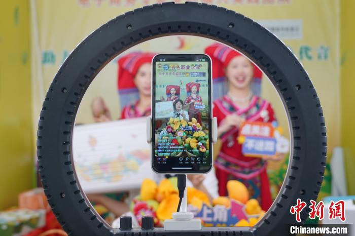 資料圖:百色田東縣芒果采摘季,十幾家電商團(tuán)隊(duì)齊聚該縣的中國芒果交易中心進(jìn)行直播。韋國政 攝