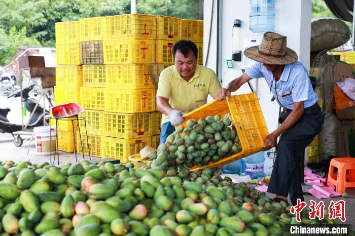 資料圖:百色田東縣中國芒果交易中心,工作人員正在搬運(yùn)芒果。王偉臣 攝