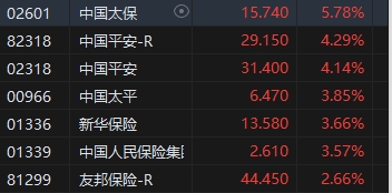 保險、券商、銀行等大金融板塊全天強勢,中國太保漲近6%。盡管總保費保持正增長,但各公司表現(xiàn)分化,保費收入增速“三升兩降”。 其中,中國人壽(9.06, 0.23, 2.60%)實現(xiàn)保費收入3376億元,同比增長3.2%;中國平安(31.4, 1.25, 4.15%)實現(xiàn)保費收入2644.22億元,同比增長1.6%;中國人保實現(xiàn)保費收入2530.31億元,同比增長1.3%;中國太保實現(xiàn)保費收入1541.77億元,同比下降0.2%;新華保險(13.58, 0.48, 3.66%)實現(xiàn)保費收入571.93億元,同比下降11.7%。