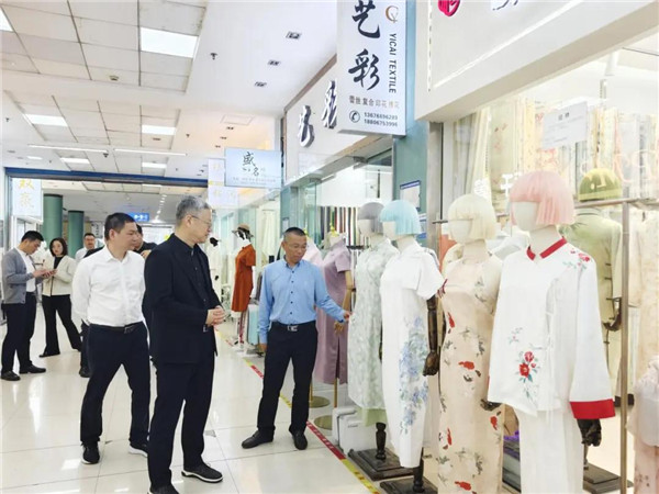 “這款面料的印花在哪里加工的?中國輕紡城的國風(fēng)面料在下游應(yīng)用和反饋如何?”在調(diào)研中國輕紡城聯(lián)合市場漢服面料集群區(qū)期間,調(diào)研組一行人深入了解了這類企業(yè)的生產(chǎn)和經(jīng)營情況。隨著“新國潮”的崛起,馬面裙、唐宋制漢服、新中式等風(fēng)格逐漸被熟知,直接“帶火”了紡織產(chǎn)業(yè)鏈上游的面料市場。去年以來,浙江中國輕紡城股份有限公司東市場分公司為發(fā)掘、培育市場小品種面料,在聯(lián)合市場一、二通道開設(shè)了漢服面料集群區(qū),除了傳統(tǒng)漢服面料,還包括新中式國風(fēng)面料。