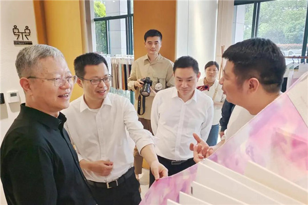 在浙江大樹紡織科技有限公司,柯橋區(qū)委常委、中國輕紡城黨工委書記袁笑文陪同調(diào)研組一行深入了解了公司發(fā)展淵源和傳承創(chuàng)新的歷程。據(jù)公司總經(jīng)理邵靈彬介紹,大樹紡織集面料研發(fā)、生產(chǎn)、銷售、供應(yīng)鏈管理、面料成衣企劃為一體,鏈接全球頂級纖維商,聚焦可持續(xù)時尚面料,以數(shù)字化服務(wù)全球市場。圍繞不同國家、不同品牌需求,目前公司打造了醋酸類、極致天然、輕自然、新合纖和原創(chuàng)印花五大系列面料,擁有強大的研發(fā)創(chuàng)新能力和產(chǎn)業(yè)鏈協(xié)作能力。