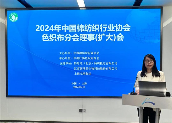4月17日,由中國(guó)棉紡織行業(yè)協(xié)會(huì)主辦(以下簡(jiǎn)稱“中棉行協(xié)”)、中棉行協(xié)色織布分會(huì)承辦、特思達(dá)(北京)紡織檢定有限公司、江蘇新瑞貝生物科技股份有限公司及上海立明集團(tuán)支持的2024年中國(guó)棉紡織行業(yè)協(xié)會(huì)色織布分會(huì)理事擴(kuò)大會(huì)在上海召開(kāi)。中棉行協(xié)會(huì)長(zhǎng)董奎勇、副會(huì)長(zhǎng)王耀及色織布分會(huì)理事以上單位及相關(guān)會(huì)員企業(yè)代表參加會(huì)議。會(huì)議由中棉行協(xié)色織布分會(huì)秘書(shū)長(zhǎng)和圓圓主持。