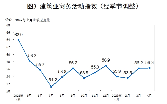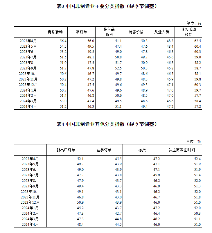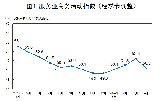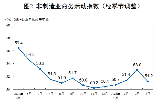 4月份,非制造業(yè)商務(wù)活動(dòng)指數(shù)為51.2%,比上月下降1.8個(gè)百分點(diǎn),仍高于臨界點(diǎn),表明非制造業(yè)延續(xù)擴(kuò)張態(tài)勢(shì)。