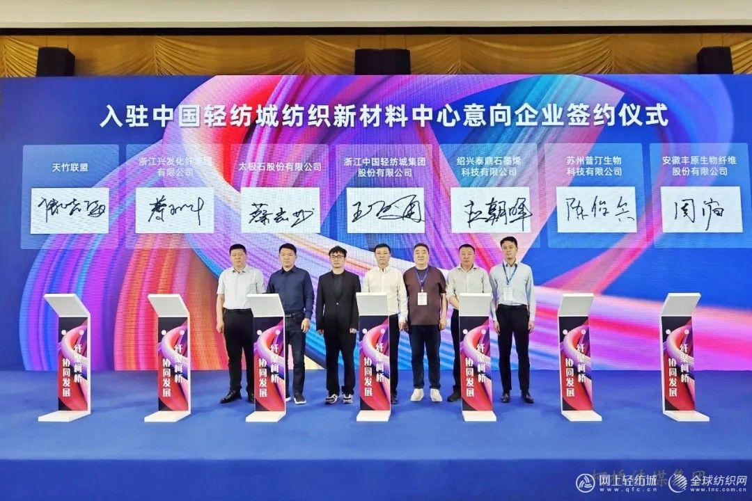 會(huì)上,浙江中國(guó)輕紡城集團(tuán)股份有限公司與中國(guó)化學(xué)纖維工業(yè)協(xié)會(huì)簽訂戰(zhàn)略合作協(xié)議,中國(guó)輕紡城紡織新材料中心被授予“中國(guó)纖維流行趨勢(shì)推廣與應(yīng)用平臺(tái)”。
