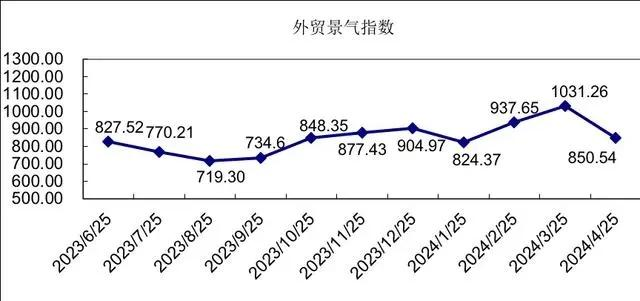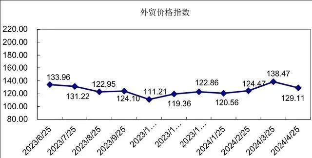 2024年4月份外貿(mào)景氣指數(shù)收于850.54點(diǎn),環(huán)比下跌17.52%;外貿(mào)價(jià)格指數(shù)收于129.11點(diǎn),環(huán)比下跌6.76%;外貿(mào)信心指數(shù)收于1065.76點(diǎn),環(huán)比上漲14.58%。