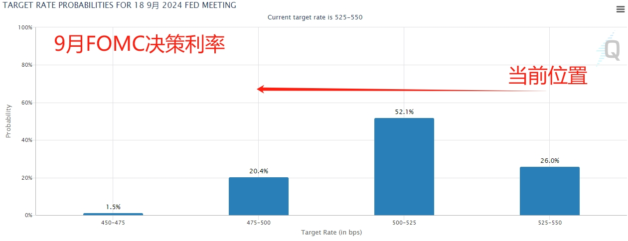 基于CPI數(shù)據(jù)帶來的信心,互換市場對于美聯(lián)儲9月打出首次降息的預(yù)測概率也升破了70%,同時(shí)預(yù)測年底前有兩次降息的概率也超過50%。